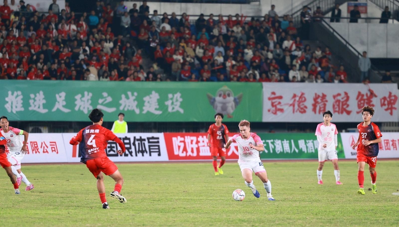 19時38分,比賽正式拉開序幕。此次比賽常德隊采用的是4231陣型。上半場戰(zhàn)罷,常德隊與婁底隊?wèi)?zhàn)成0:0平,雙方你來我往,展開激烈爭奪,攻防轉(zhuǎn)換節(jié)奏較快,但均未能將攻勢轉(zhuǎn)化為進(jìn)球。雙方門將發(fā)揮出色,各自化解了對方幾次有威脅的射門,力保城門不失,比賽懸念十足。