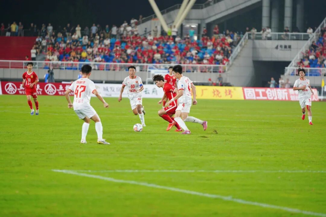 9月14日晚,“湘超”聯(lián)賽岳陽隊坐鎮(zhèn)主場迎戰(zhàn)懷化隊。經(jīng)過90分鐘激烈角逐,岳陽隊?wèi){借9號梅碧瑞與15號熊譽凱的關(guān)鍵進球,以2:0戰(zhàn)勝懷化隊。