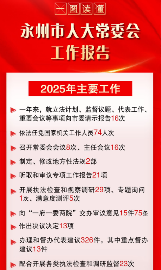 永州市第六屆人民代表大會第五次會議于2025年12月26日補選產(chǎn)生了永州市第六屆人民代表大會常務(wù)委員會副主任1名、委員1名,現(xiàn)公告如下:...