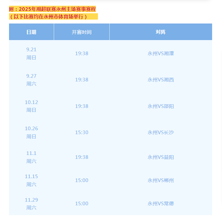 為更好地服務(wù)公眾,滿足廣大球迷朋友的文化需求,配合2025年湖南省足球協(xié)會(huì)超級(jí)聯(lián)賽(湘超聯(lián)賽)舉辦,在永州賽區(qū)(主場(chǎng))賽事當(dāng)天,永州市博物館將延長(zhǎng)免費(fèi)開放時(shí)間。