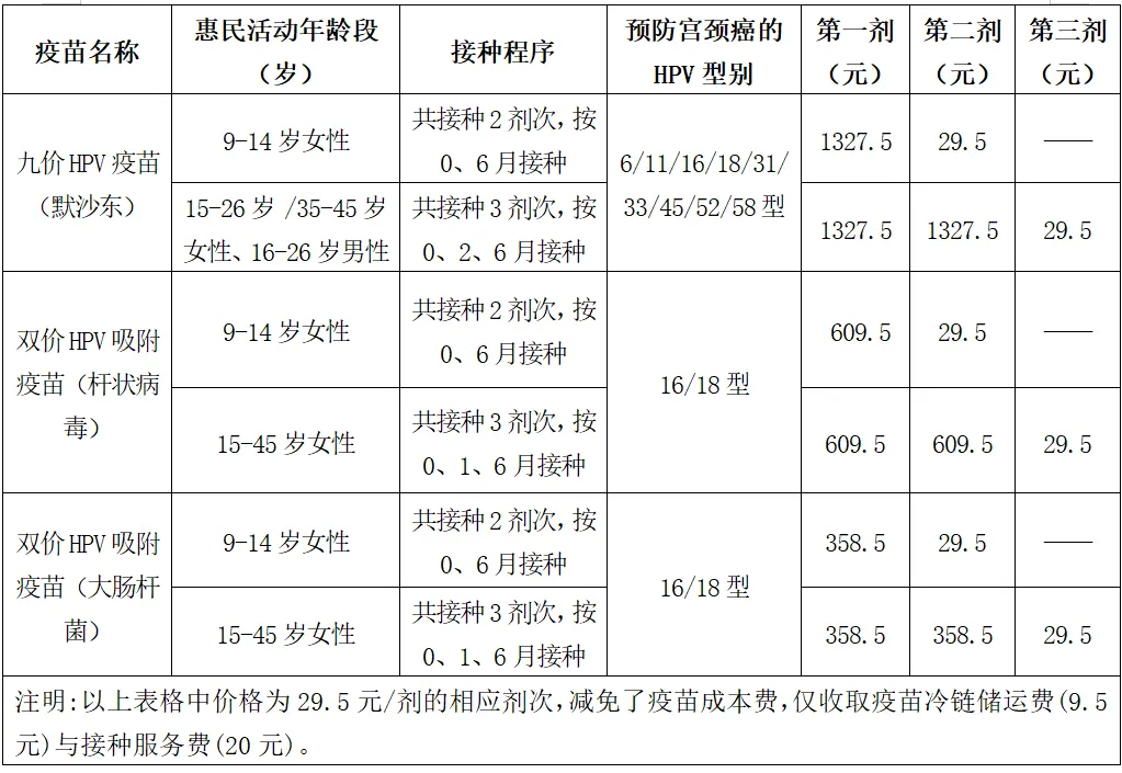 雙價(jià)HPV疫苗惠民活動(dòng)年齡段:9-45歲女性。