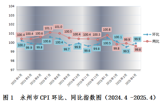2025年4月份,食品供應(yīng)總體充足,永州居民消費(fèi)價格(CPI)同比價格下跌0.4%,環(huán)比價格下跌0.1%。