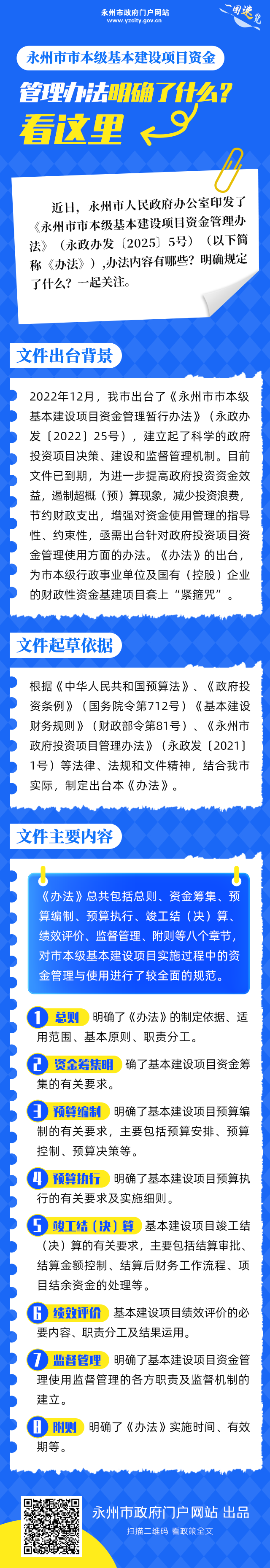 一圖速覽丨永州市市本級基本建設(shè)項目資金管理辦法明確了什么?看這里