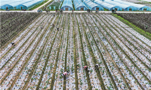8月13日,新田縣中山街道東升村,村民在田間管護(hù)番茄。立秋過后,當(dāng)?shù)夭宿r(nóng)搶抓農(nóng)時進(jìn)行除草、施肥、補(bǔ)秧等農(nóng)事作業(yè),為蔬菜豐產(chǎn)豐收打好基礎(chǔ)?!?span style="font-size: 9pt;">劉貴雄 攝