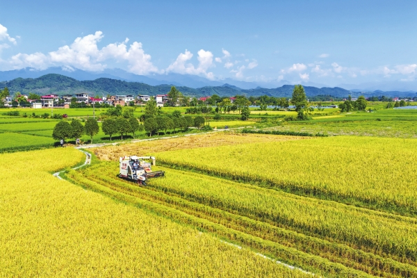 8月31日,東安縣紫溪市鎮(zhèn)塘復(fù)村,農(nóng)民駕駛收割機(jī)收割中稻。時(shí)下各地中稻陸續(xù)成熟,農(nóng)民搶抓晴好天氣收割中稻,確保顆粒歸倉?!?span>蔡小平 攝