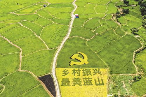 9月14日,藍(lán)山縣塔峰鎮(zhèn)竹市村,長勢(shì)良好的彩色水稻構(gòu)成了一幅鄉(xiāng)村振興主題稻田畫,成為鄉(xiāng)村田園里的一道亮麗風(fēng)景?!∨砣A 攝