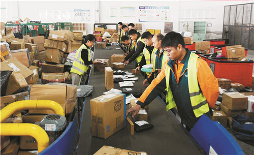 “雙十一”期間,我市各地快遞物流企業(yè)結(jié)合實(shí)際情況,通過智能系統(tǒng)升級、人力調(diào)配優(yōu)化等措施,確保快遞物流高效運(yùn)行,全力應(yīng)對電商購物高峰期。圖為中國郵政集團(tuán)有限公司江永縣分公司郵件處理中心,工作人員正在流水線上分揀快遞包裹?!√锶缛?攝