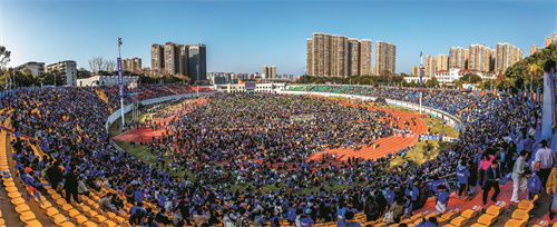 永州球迷在永州體育場觀看婁底隊對永州隊的湘超1/4淘汰賽。永州日報全媒體記者 郭磊 文佳星 攝
