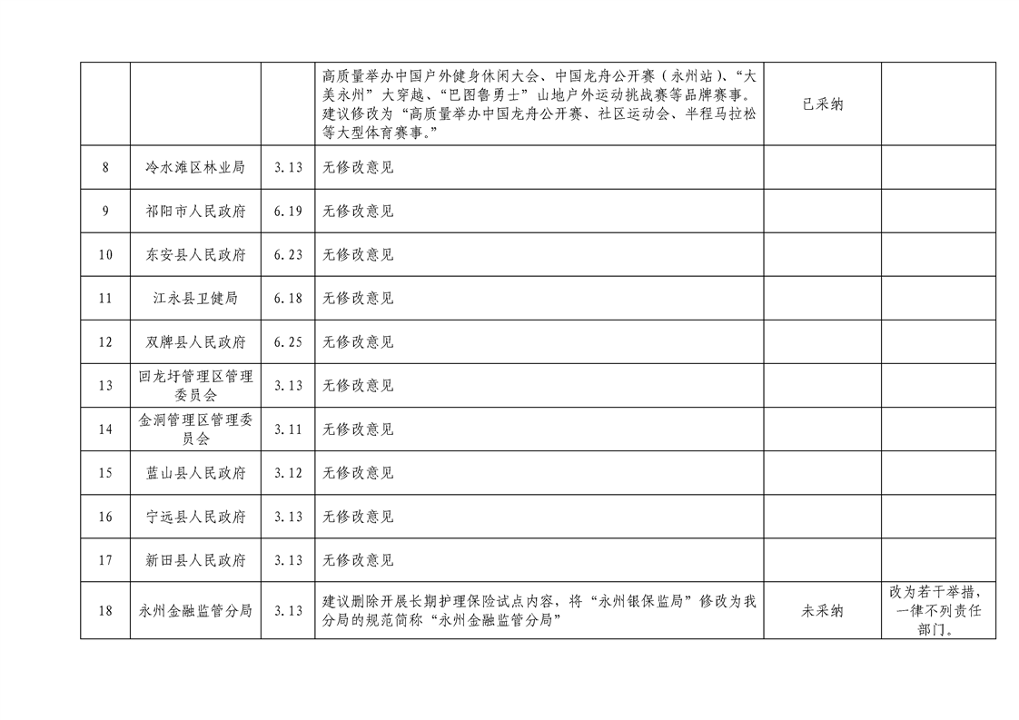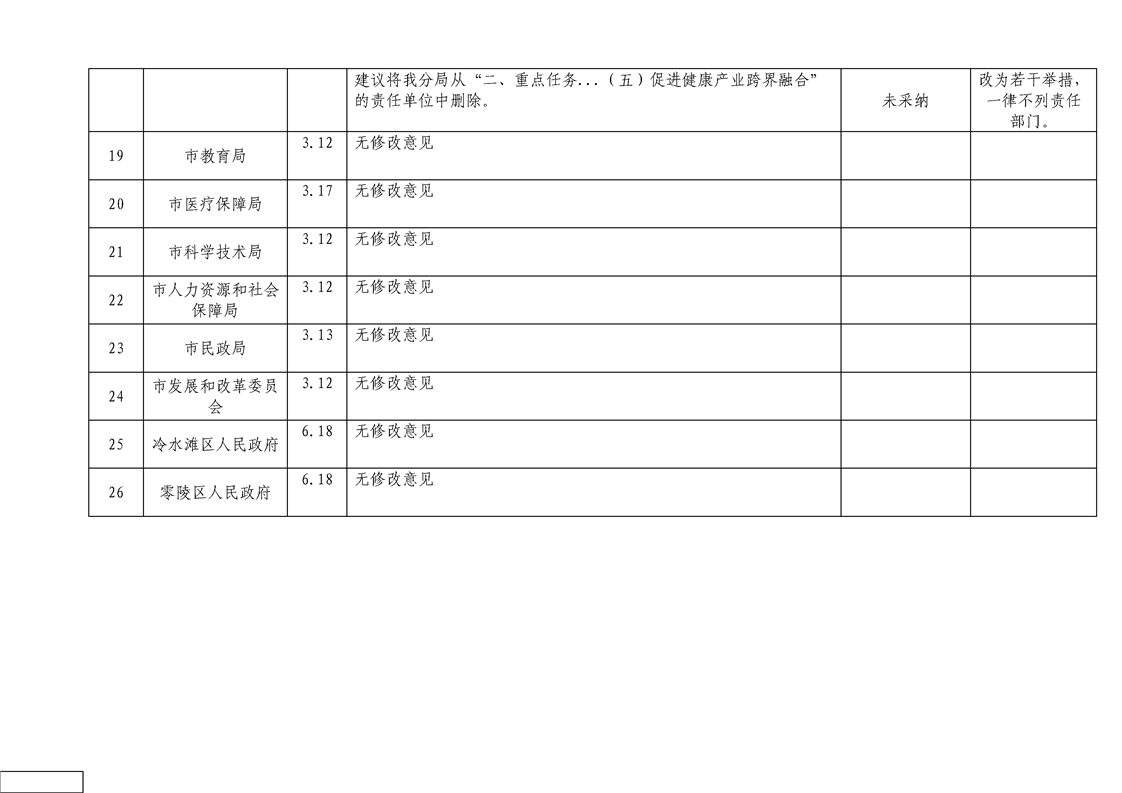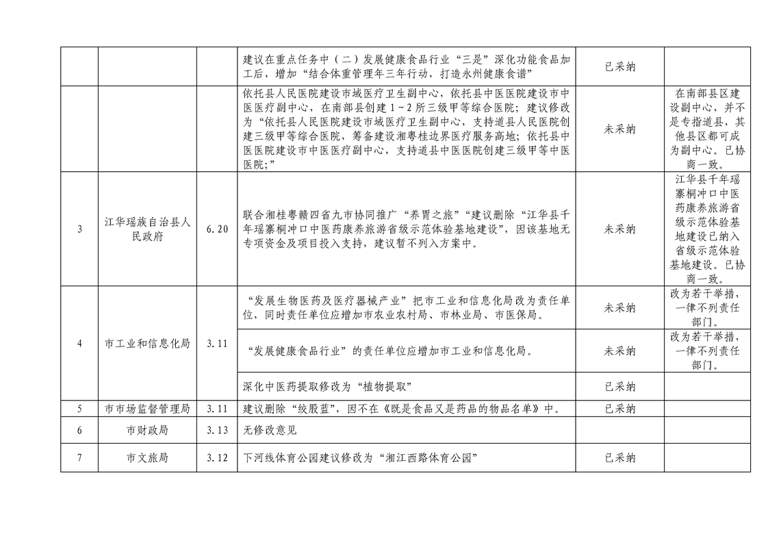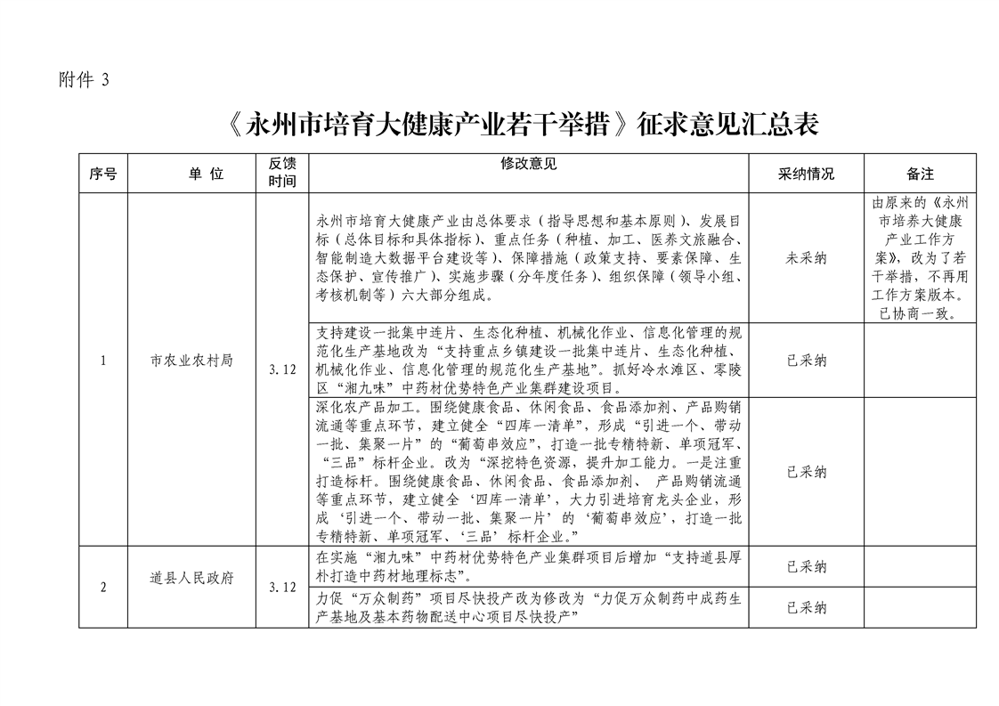 《永州市培育大健康產(chǎn)業(yè)若干舉措》征求意見匯總表