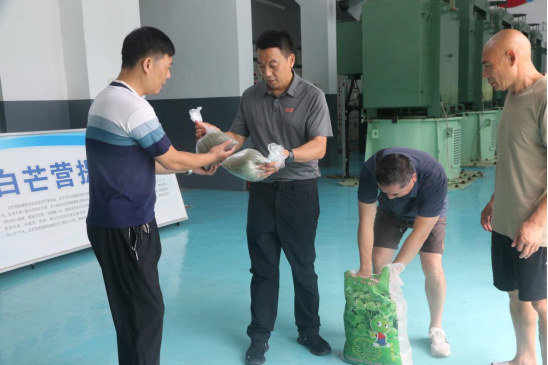 第一站首先抵達(dá)白芒營提灌站。機(jī)房內(nèi)熱浪襲人,李國旗親手將裝著優(yōu)質(zhì)綠豆的“清涼包”遞到當(dāng)班職工手中。他在中控室工作電腦前仔細(xì)查看,向值班工作人員了解泵站運行情況,詳細(xì)詢問設(shè)備高溫運行狀況和防暑保障,反復(fù)叮囑:“天氣再熱,安全運行這根弦不能松!”