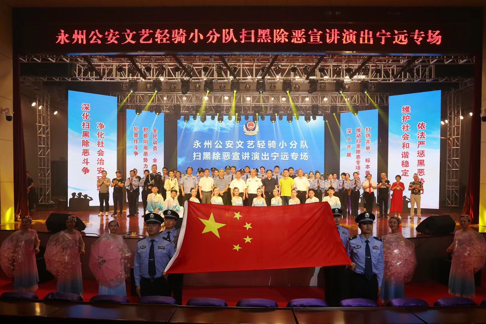 本網(wǎng)訊(通訊員 歐霞) 為進(jìn)一步掀起掃黑除惡的宣傳熱潮,提高廣大群眾參與掃黑除惡專項(xiàng)斗爭(zhēng)的熱情和干勁,6月10日晚,永州公安文藝輕騎小分隊(duì)掃黑除惡宣講演出團(tuán)走進(jìn)寧遠(yuǎn),為寧遠(yuǎn)人民送上了一場(chǎng)內(nèi)容豐富、特點(diǎn)鮮明、精彩紛呈的文藝表演。副市長(zhǎng)、縣委書記劉衛(wèi)華,市公安局調(diào)研員何永清等縣委、人大、政府、政協(xié)縣級(jí)領(lǐng)導(dǎo)出席。來自縣直機(jī)關(guān)、企事業(yè)單位、鄉(xiāng)鎮(zhèn)街道、社區(qū)、人民團(tuán)體等900余名干部職工和群眾觀看了宣講演出。