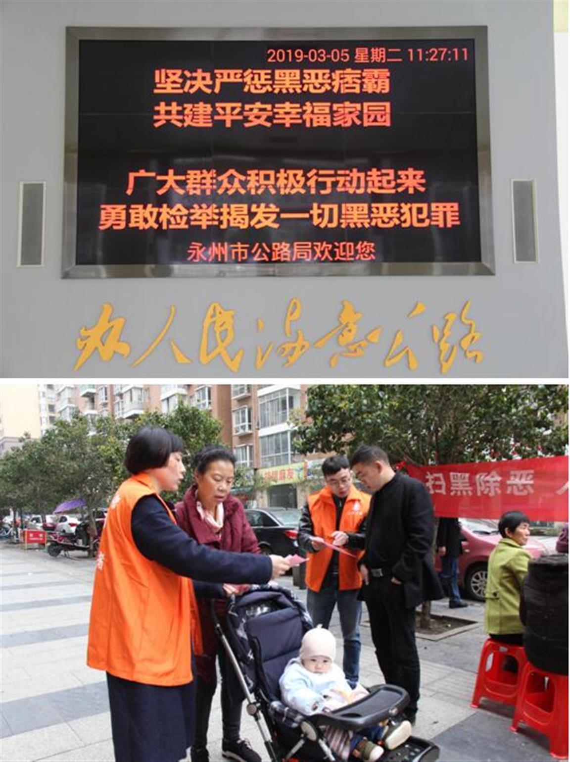 受歷史因素和地域條件影響,永州民風(fēng)強(qiáng)悍,在一些邊遠(yuǎn)農(nóng)村,少數(shù)群眾法治觀念較為淡薄,宗族意識強(qiáng),容易受黑惡勢力裹挾喪失理性,參與黑惡犯罪活動。永州市公路局充分利用公路行業(yè)點多、面廣、線長的行業(yè)優(yōu)勢,最大限度推進(jìn)宣傳全覆蓋,營造“人人知曉、人人參與”的掃黑除惡濃厚氛圍,全力擠壓黑惡勢力活動空間。加大標(biāo)語宣傳牌宣傳力度,在公路服務(wù)區(qū)、治超站、養(yǎng)護(hù)站、重點路段、大中修工地等區(qū)域懸掛橫幅標(biāo)語,在局機(jī)關(guān)大廳一樓宣傳欄制作了“堅決打贏掃黑除惡攻堅戰(zhàn),深挖黑惡勢力保護(hù)傘”專欄,展示開展掃黑除惡專項斗爭的目標(biāo)任務(wù)、重大意義、總體要求、重點打擊范圍等六個方面的內(nèi)容,每天通過電子顯示屏幕播放 “平安創(chuàng)建掃黑除惡”視頻和宣傳標(biāo)語。充分發(fā)揮新媒介宣傳優(yōu)勢,利用永州公路微信公眾號、永州公路工作微信群和干部職工微信朋友圈發(fā)布掃黑除惡應(yīng)知應(yīng)會知識要點;路政執(zhí)法人員在執(zhí)法現(xiàn)場散發(fā)宣傳材料,向駕駛?cè)藛T、公路沿線集鎮(zhèn)群眾宣傳自我保護(hù)能力,發(fā)動群眾收集、舉報并反饋相關(guān)線索;積極借助報紙、網(wǎng)站等傳統(tǒng)平臺媒體,構(gòu)建全方位、立體化的宣傳工作格局。據(jù)統(tǒng)計,截至3月底,在全市公路沿線懸掛橫幅標(biāo)語50余條,在“永州公路公眾號”掃黑除惡、平安建設(shè)資料知識集合和視頻6期;發(fā)微信工作群、干部職工個人發(fā)微信朋友圈80余人次。向省、市、縣報紙及網(wǎng)站報送掃黑除惡新聞報道、簡訊20余篇。
