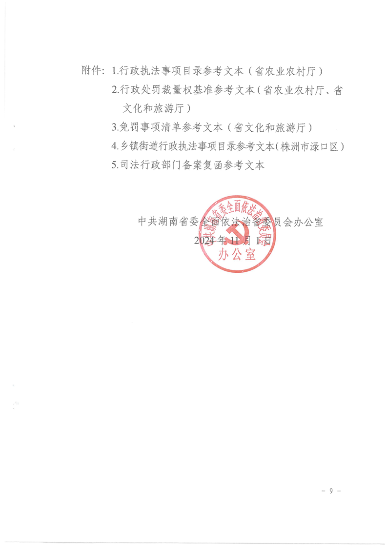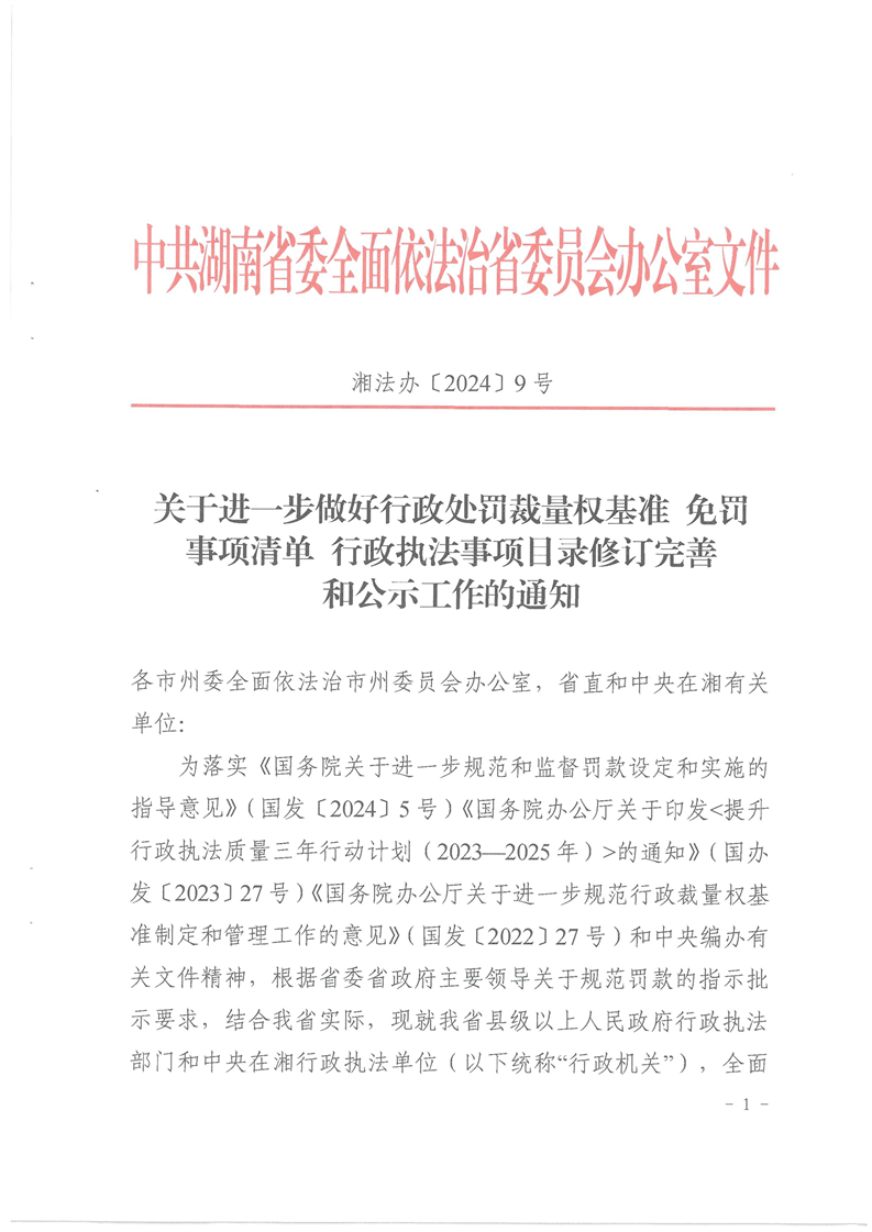 湖南省委依法治省辦關于進一步做好行政處罰裁量權基準免罰事項清單行政執(zhí)法事項目錄修訂完善和公示工作的通知