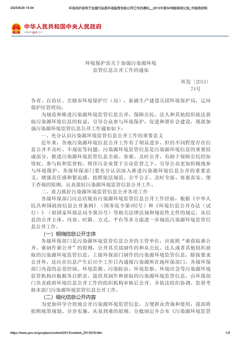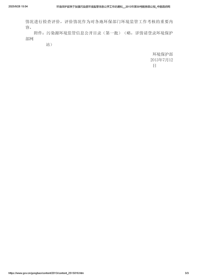 環(huán)境保護(hù)部關(guān)于加強(qiáng)污染源環(huán)境監(jiān)管信息公開工作的通知