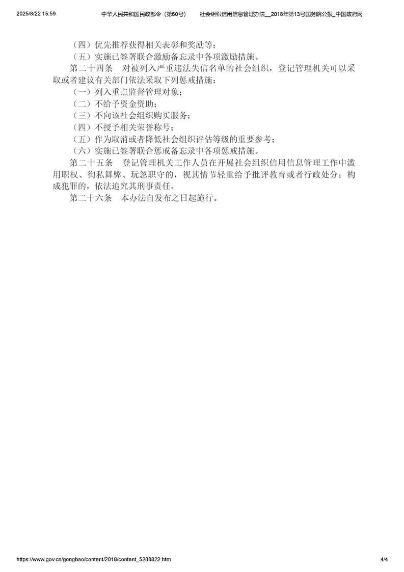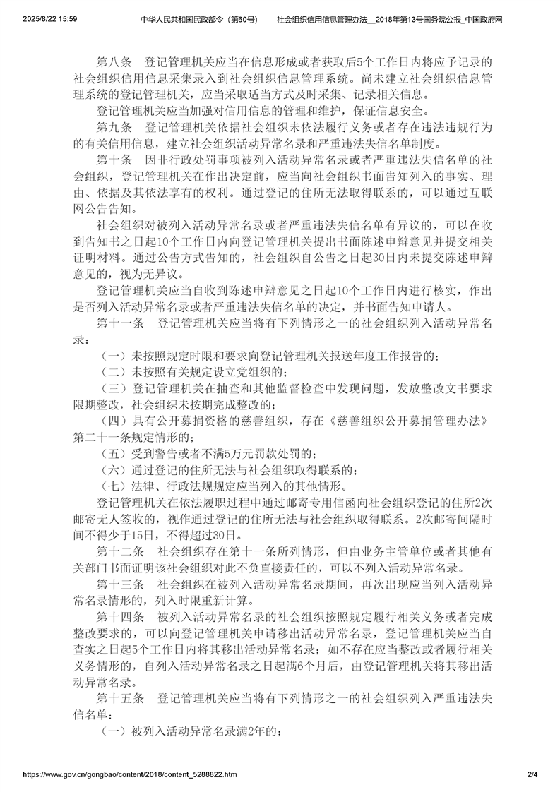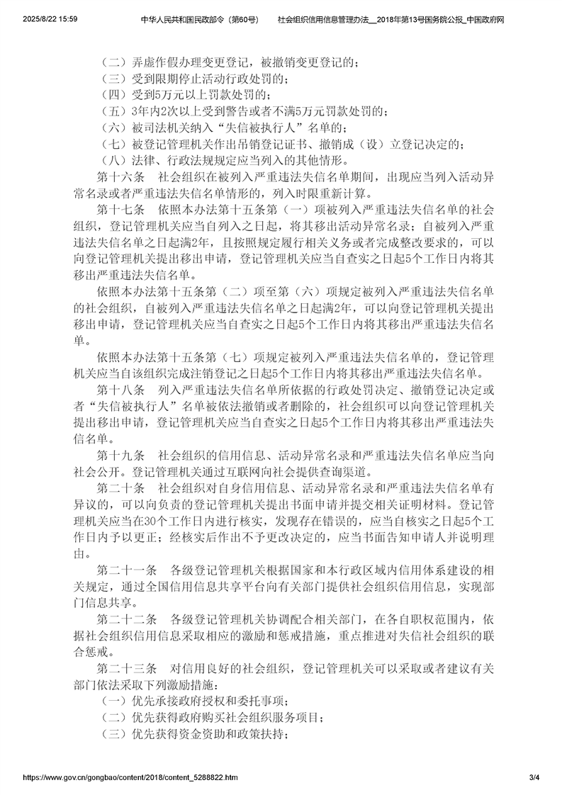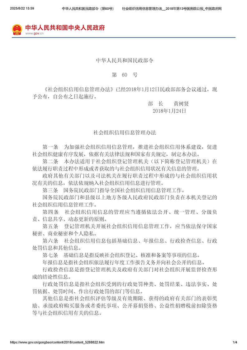 《社會組織信用信息管理辦法》(民政部令第60號)