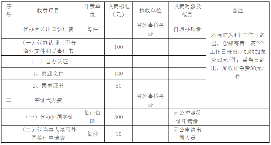 一、全省外事僑務系統(tǒng)行政事業(yè)性收費一律按本次發(fā)布的項目標準執(zhí)行,具體收費標準見附件?!?/p>